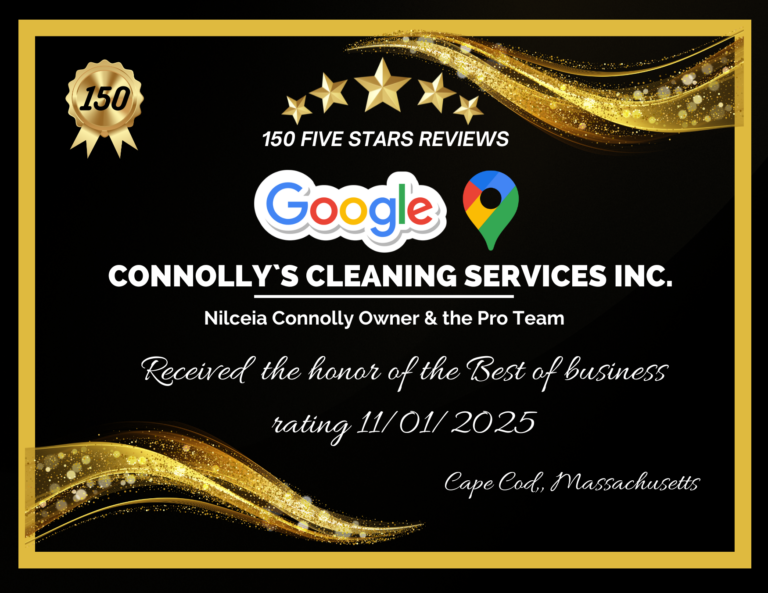 Since 2014, our family-owned business has proudly served Cape Cod with dedication, integrity, and a personal touch. With over 150 five-star reviews on Google, Connolly’s Cleaning Services Inc. is known for delivering spotless results and peace of mind.